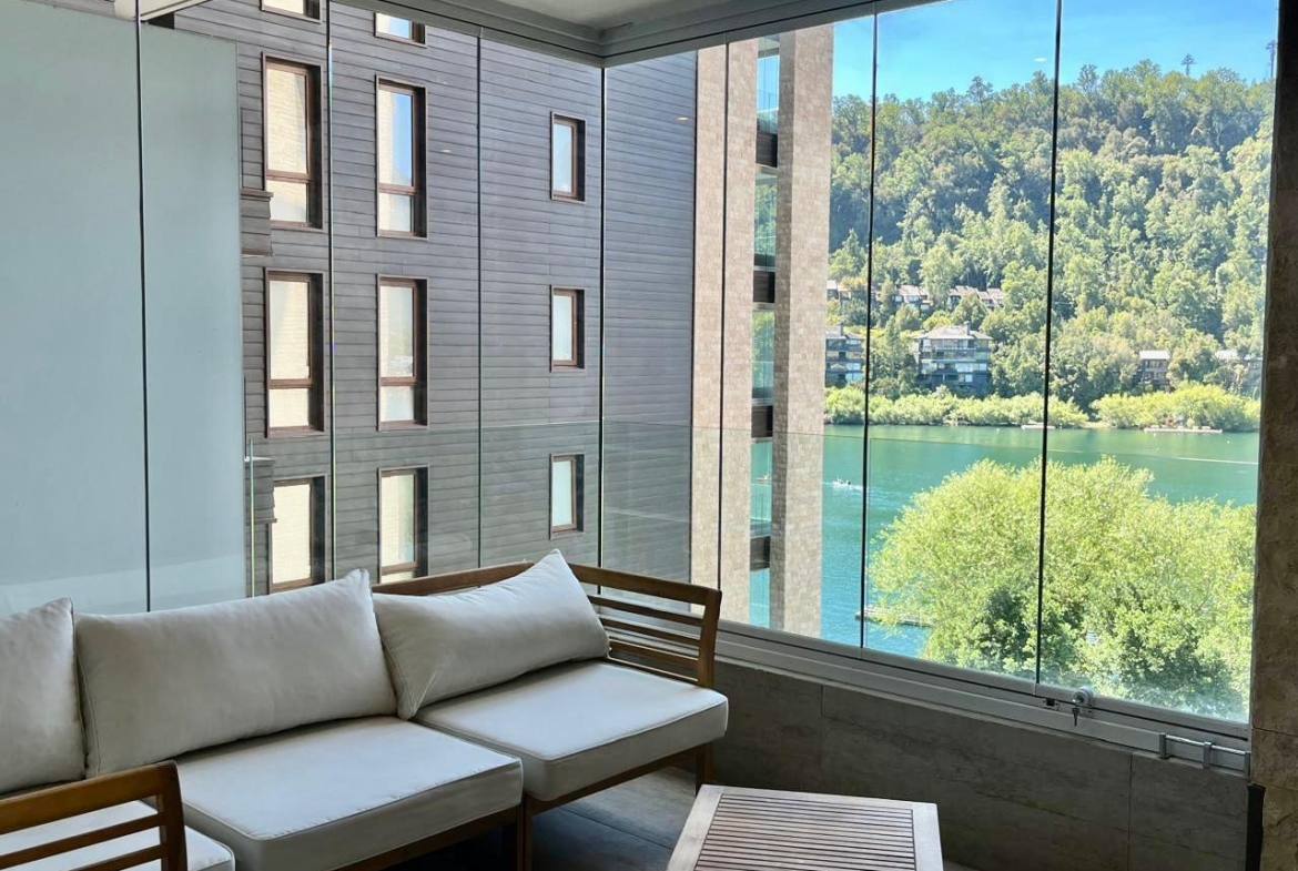 Moderno y acogedor departamento en Condominio Parque Pinares, con terraza con vista al lago y espacios pensados para una estadía cómoda. Living comedor luminoso, cocina completa y excelente distribución para familias o grupos.